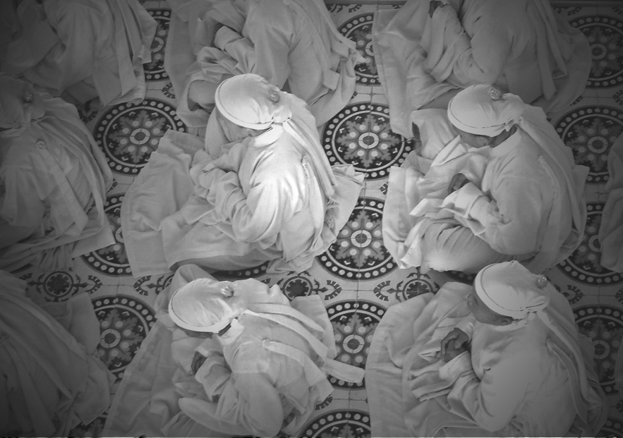 Thanks, Tom. It was unfortunate that observers could only shoot from the visitors' balcony. So I went for patterns. Good point about the variation of one worshipper having their head up. |