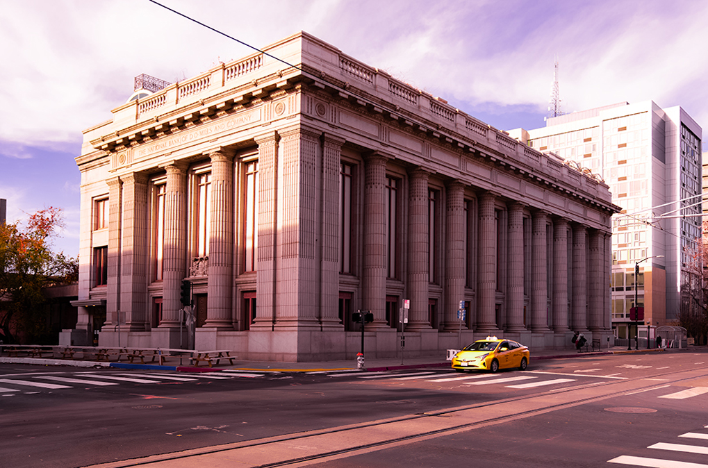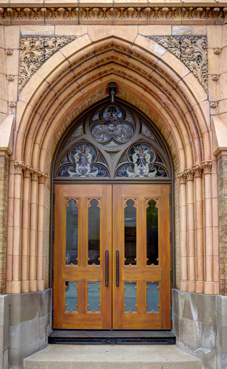 This is a good shot of a handsome old building. I recommend partly altering the perspective, but being careful to retain a little of the convergence of the vertical perspective lines, so you retain the feeling of looking up at a soaring structure. How do you like this?