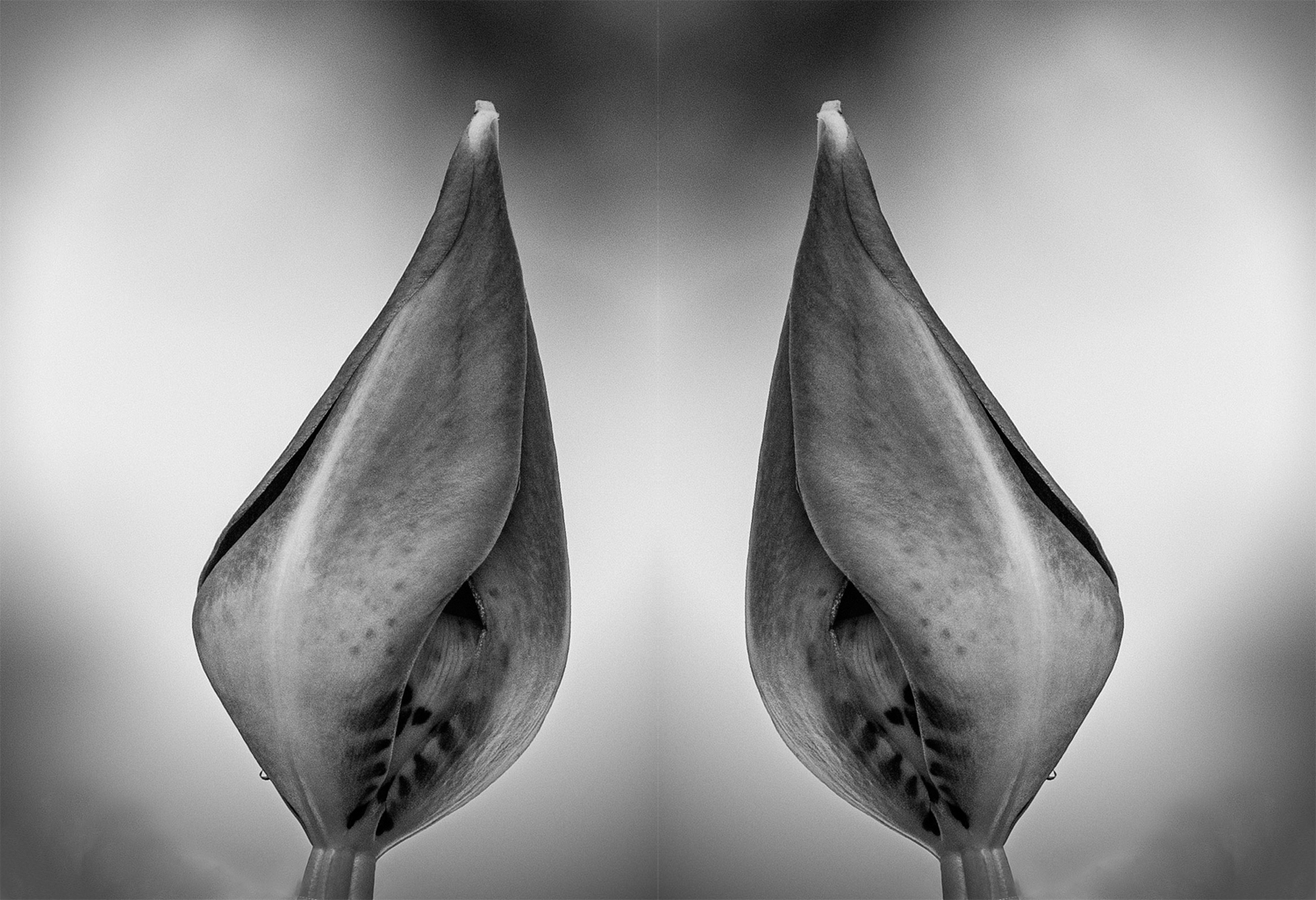 I tried converting to monochrome, playing with the red and green sliders, to lessen the tonal difference between the two peppers. I don't care for the reflection--Weston put his most famous pepper in a large aluminum funnel.