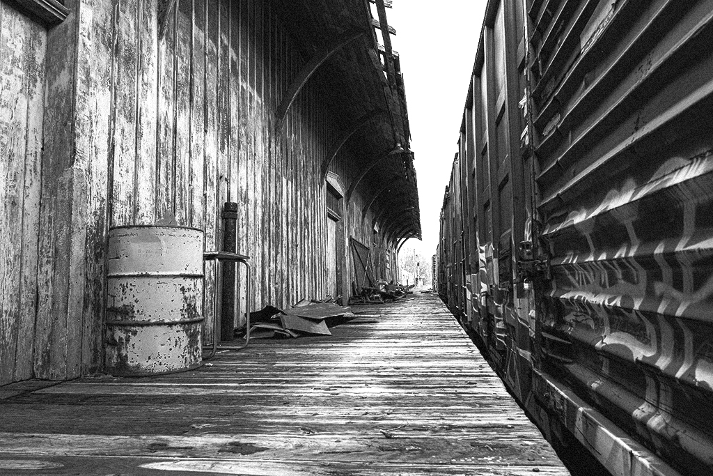 This is an interesting subject, and a really great perspective study. The blue barrel is a highlight. In spite of that, I tried converting to monochrome, using a number of steps. How does this look to you. |
