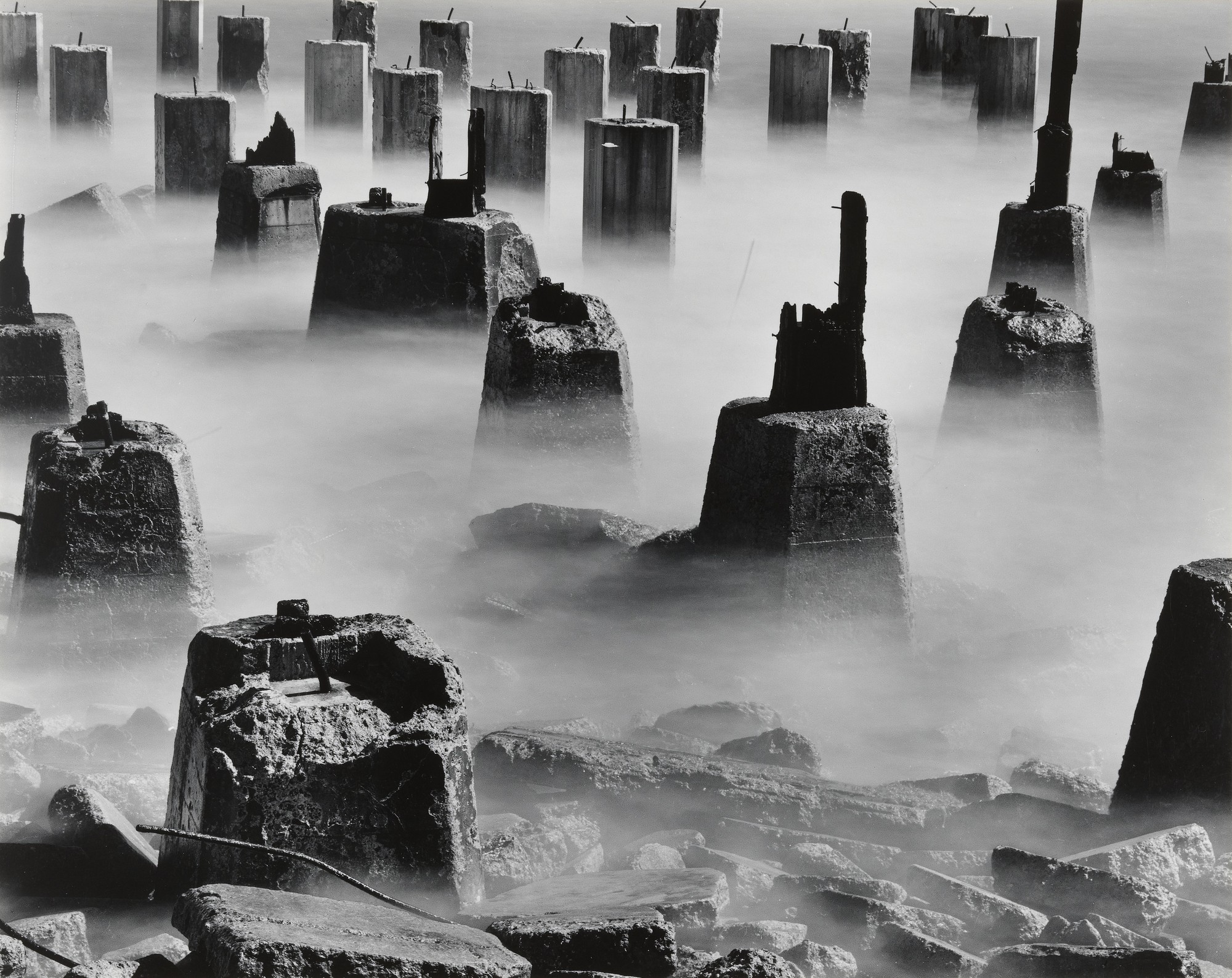Although it is not about old vs. modern, the attached famous image by Wynn Bullock (The Pilings), comes to my mind when looking at your pilings. |