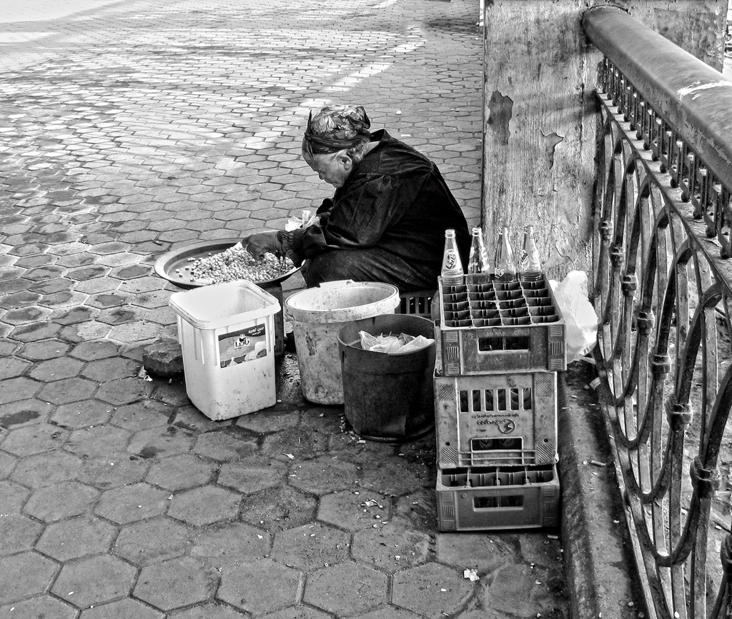 I like everything about this, including your assessment of the nutritional value of the beans from the street. This is an excellent character-and-place shot. You always show sensitivity to the situation of poor folk you see in the streets.