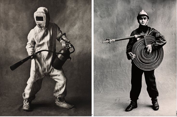 This reminds me of the "Small Trades" series done by Irving Penn. Here are two firefighter shots from his work. |
