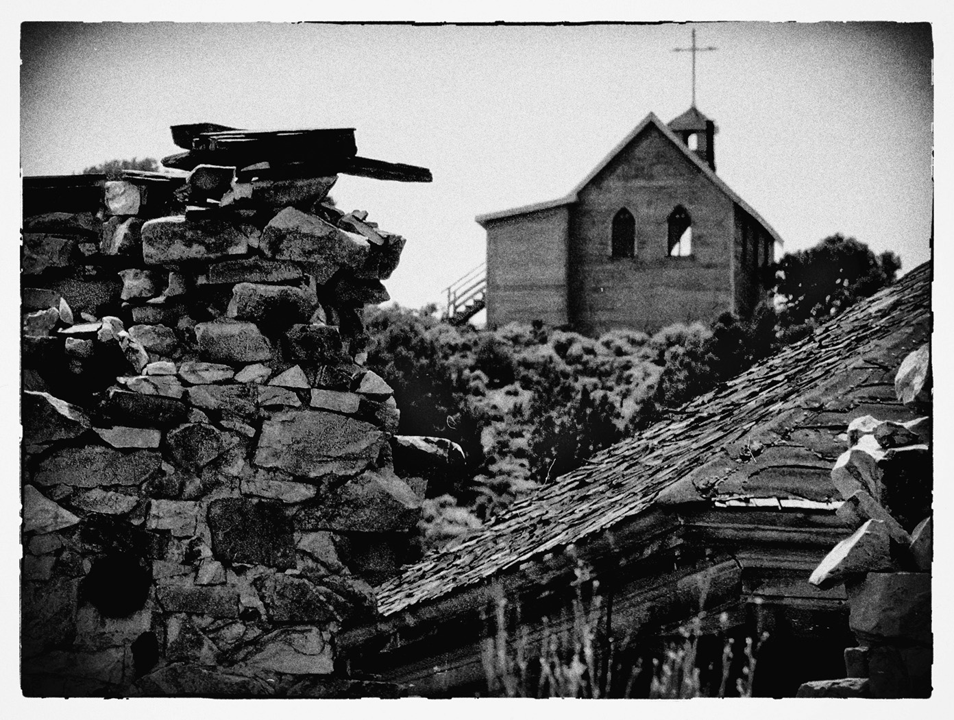 Yes, it was taken with black and white film to fit the vintage scene. The original was very sharply contrasty (already a Chairoscuro) so I felt I would make some slight enhancing adjustments to give it a "contemporary to the times" appearance: grain, Vignette, and the Nik Classic Camera pre-set. Although not much was done to it, I didn't think the original was a representative photo of the times of the mining town. (It fell to ruin many years ago.....in the film era.) It's a long way from anywhere and one has to have a reason to go into this area. It was quite prosperous in its time and even had an "Opera House," which is another vintage subject for another day. |