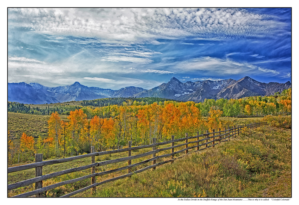 This is the reworked color image of the Autumn Colors (At the Dallas Divide in the Sneffels Range, San Juan Mountains, Colorado.) Some NIK Color, and rubbed it with some "Pixie dust." |