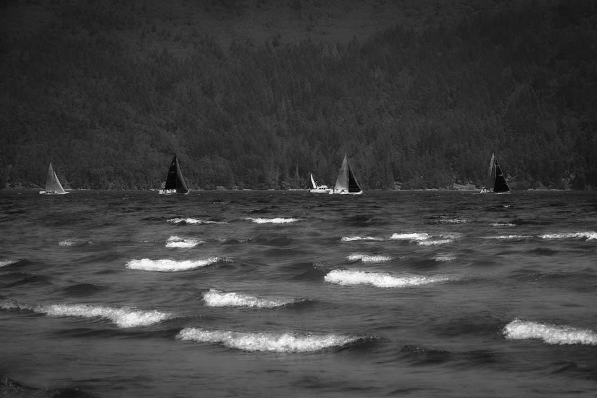 What I like from this picture is the different blue tones that contrast with the greyish white color of the sailboats.Well done |