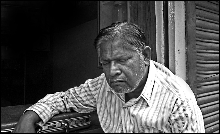 Good grab shot - just needs some improvements... When you see someone doing something different, try to get a pics of active person with the napper so there is a contrast. But with only him, try to give his traits more emphasis. Like his white beard. Suggest straightening the window frame and him, clean up the marks on the window frame that are a distraction. Then lighten his face and use Topaz - detail - overall detail strong I to make his facial features, hair, and beard stand out more. Just suggestions...