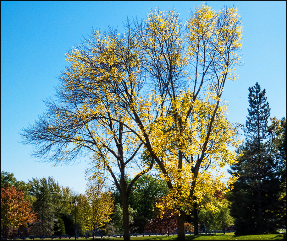 Good removal of the cars... Not every fall produces fantastic colors but you were able to get some nice yellows and reds. I do suggest that you use Topaz - adjust - boost to increase the saturation and contrast. Also suggest cropping the right side of the image. Good job. |