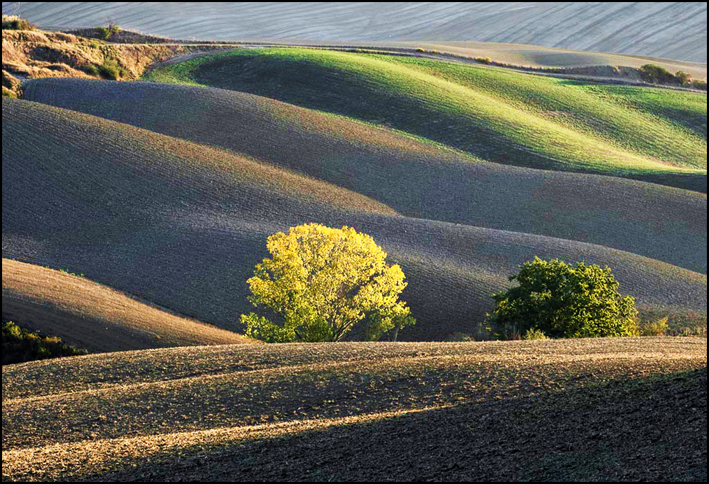 Very good layered composition and the placement of the two trees in the image. These are similar to my Palousse pics so I suggest using Topaz - adjust - boost preset to add more saturation and contrast. |
