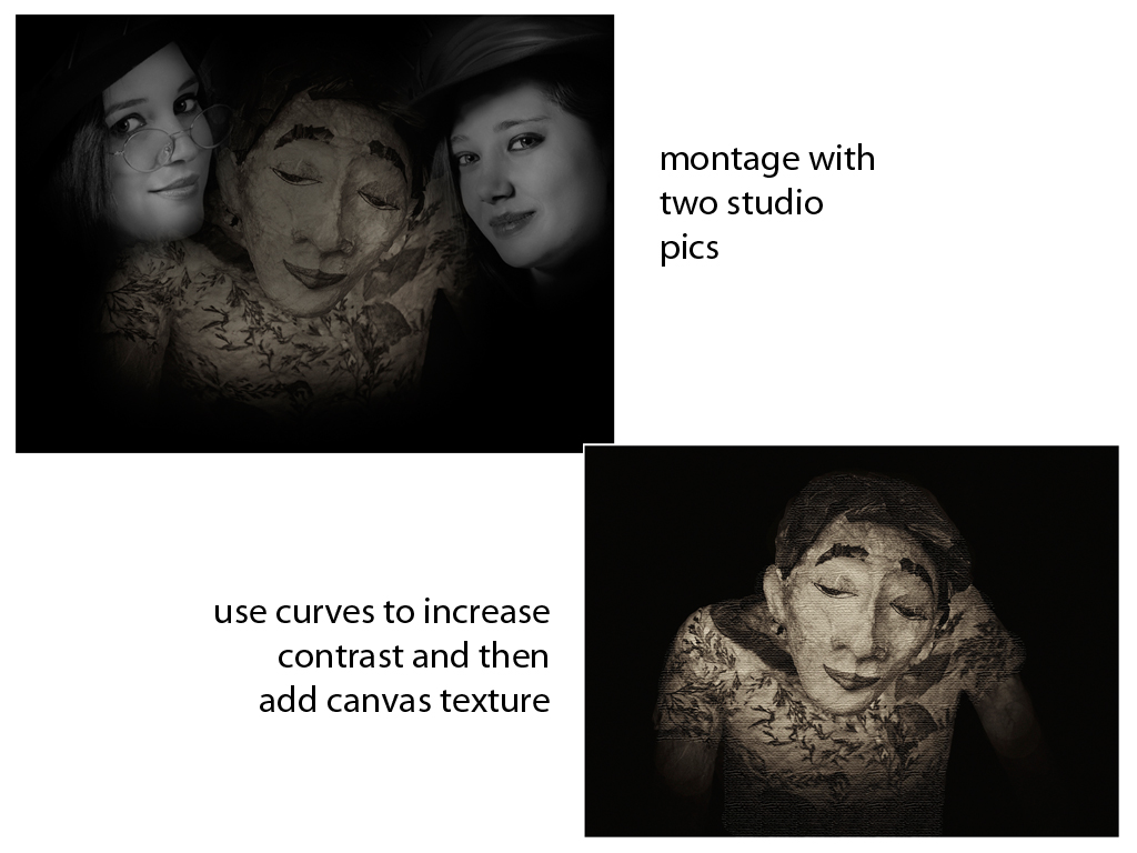 using curves to add contrast, then add canvas texture to the model. Also, you might montage with two real model images or try a double exposure with this as the main image and add a scenic or building into her image. These are just suggestions - you need more impact. I have provided my two examples to help you understand my suggestions |