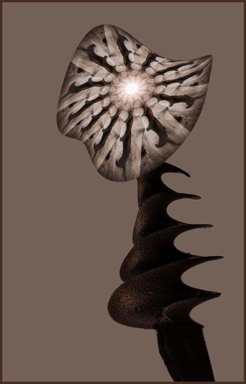 Very intricate work in creating this image. Maybe use the plain auger as the flower stem which would be interesting. Also use transform - warp on both the flower and the stem to make it interesting. Just my crazy thinking. Good job. |
