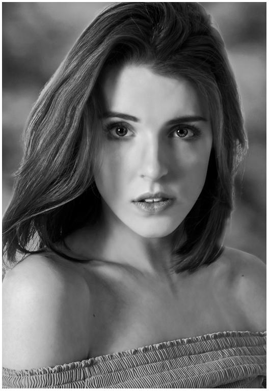 Another very good portrait... Very good pose. I suggest using dodging to lighten the facial areas and also chest area slightly. Also, the specks at the top of her hair - use stamp or healing tool. Do you charge or was this a freebee ? Good job. |