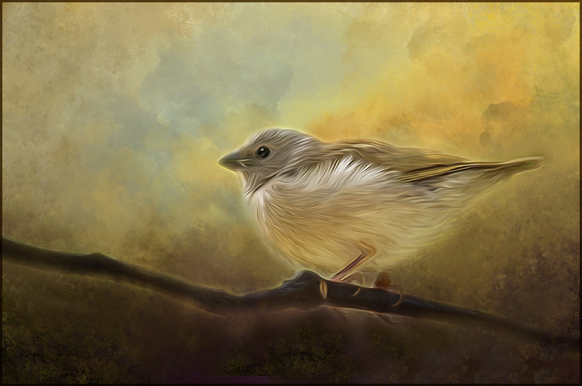 Marie, I love the painterly and soft effect you have given to the bird. As usual, composition and exposure is perfect. You know I like to play so how about trying to replace the lavender just below the bird because it draws my eye and add a little detail to your soft look with Topaz detail - overall detail strong I - 63% opacity. Great work. Just another thought... |