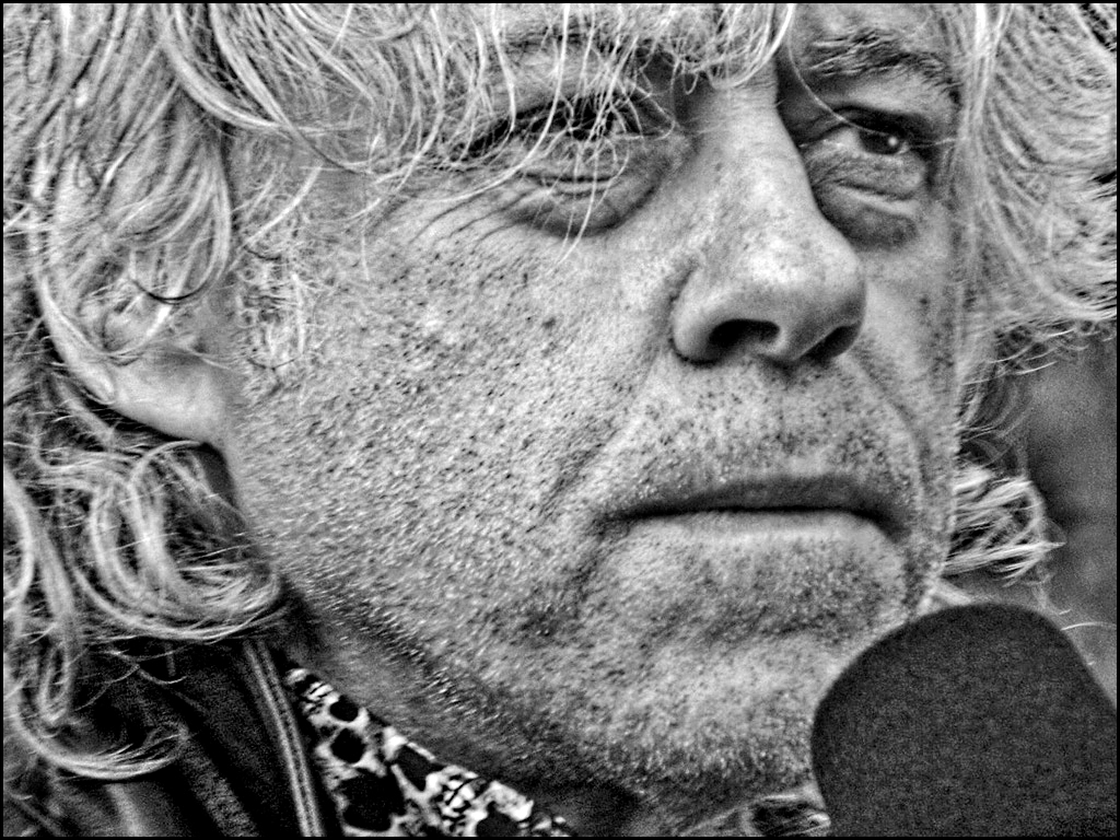 Nice facial closeup... If you purpose was for recording the rally and the speakers, you could combine this image with crowd images and images of the signs at the event for a composite. I do suggest using Topaz - detail - overall strong I preset to increase contrast and the beard grunge on his face but do whiten eyes and add a catchlight to help the portrait. Good image. |