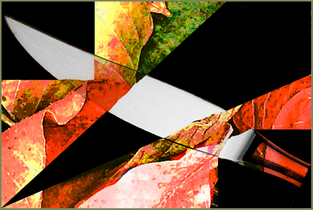 Very good impact... Good job of putting your images together for you composite. You might try to return the blade of the knife back to normal but allow the color to cross over it. Just a suggestion. Good job. |