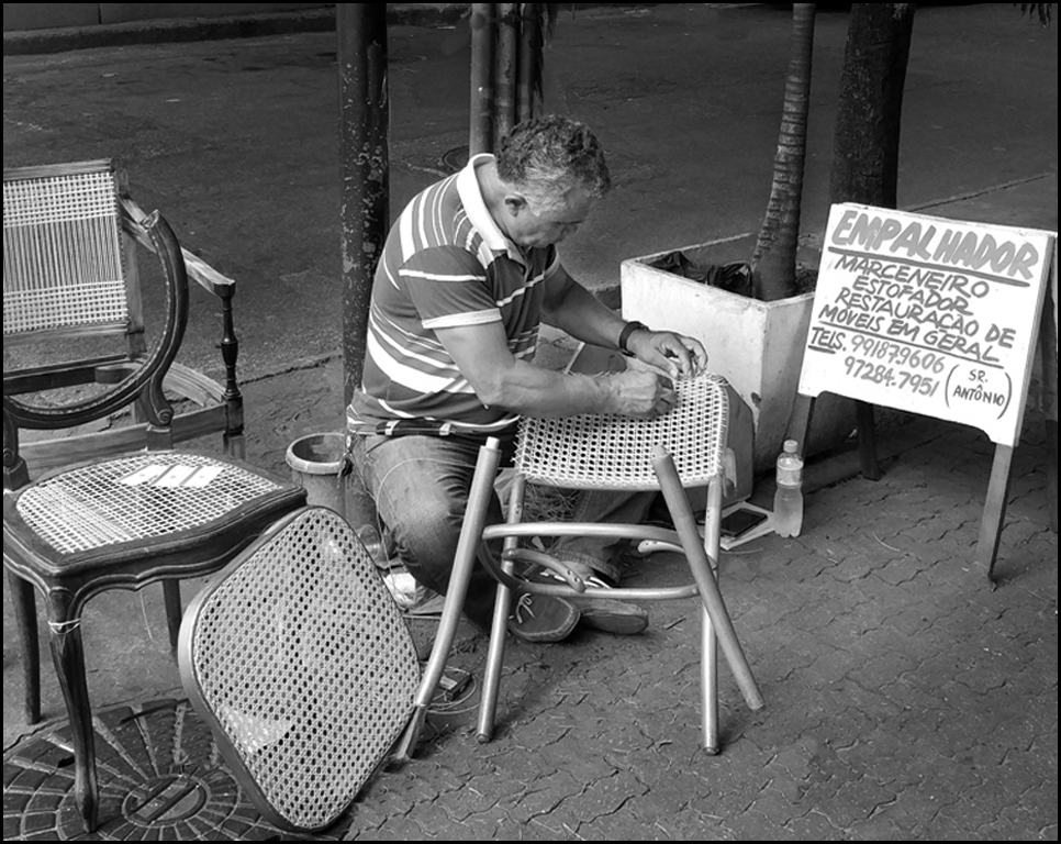 Very good worker image... Did you get any closeups of his hands working the cane ? That and this scene would make a very good montage. Suggest your crop bottom, right, left and just a little off the top. Then use stamp tool to eliminate distractions. Use dodging on his face and arms and burn on the other areas since you want the eye to be drawn to him. Good job with your first cropping but show enough of his surrounding but not too much. You know me - I am a perfectionist in mono. I do suggest that you squat to his eye level for at least one pic. Seeing more of the face would help but sometimes it isn't possible and still a good storyteller with side shots like this. Good job. |