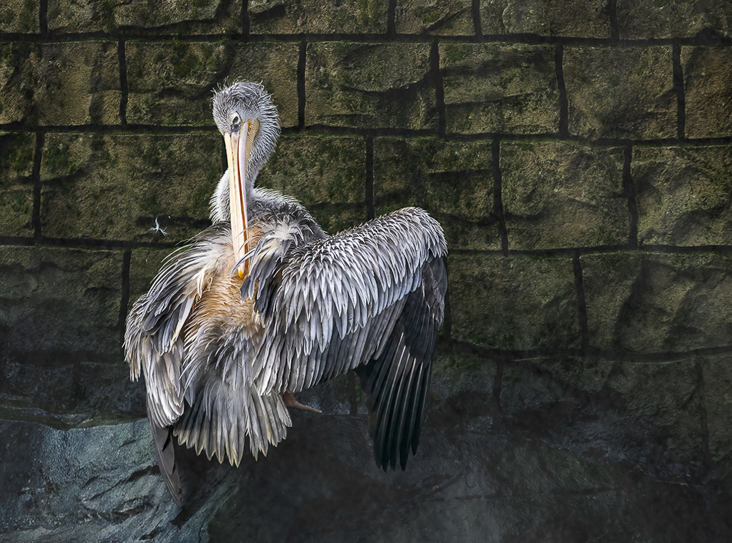 I really enjoy the textures in the bird feathers and exposed colors underneath. Perhaps toning down the intensity in the background would flatter the bird. But maybe you like the background more as is. |