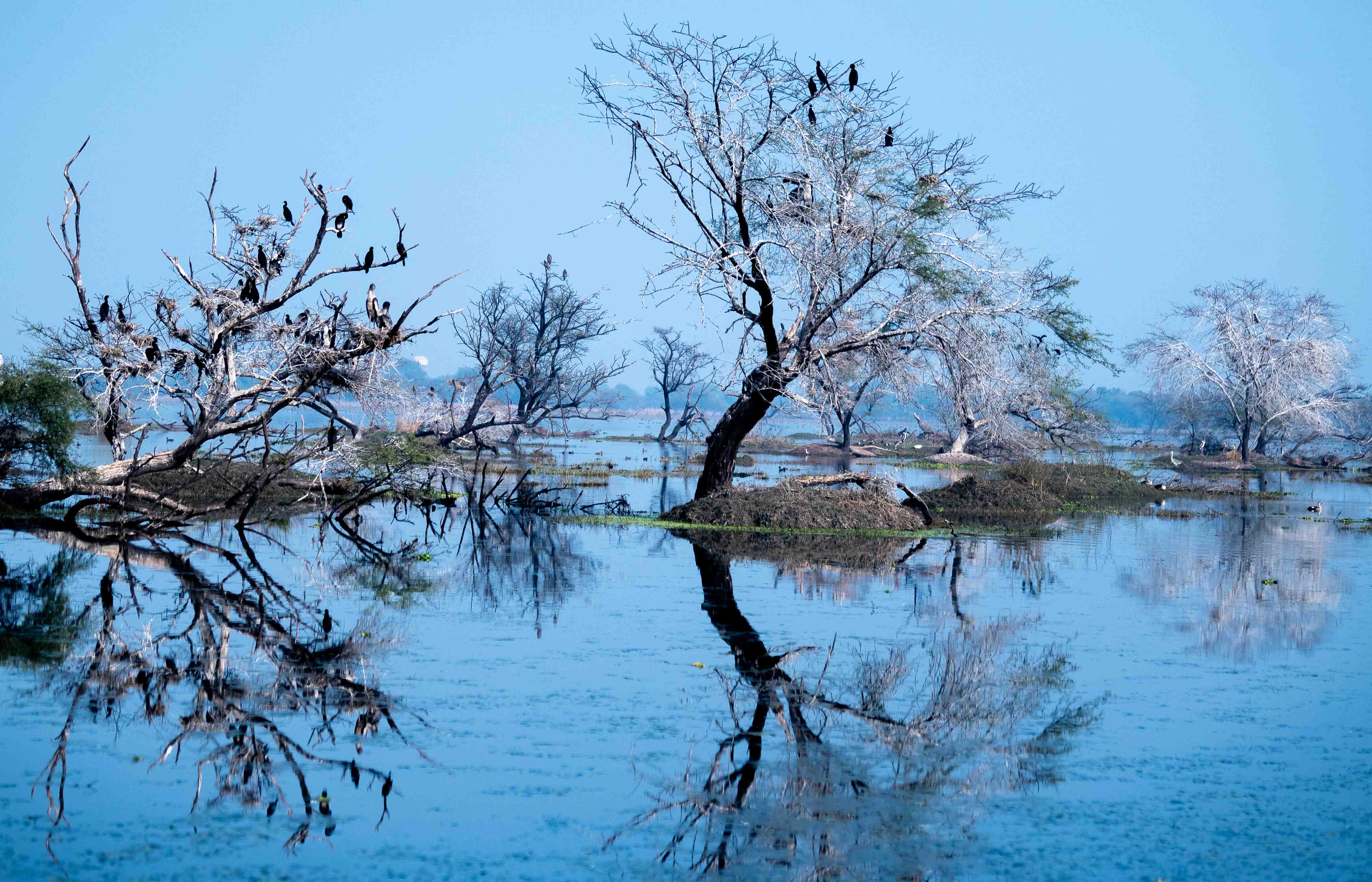The apparent lamp post on the far right is actually the pillar to measure the water level of this waterland. I thought if I would crop it, there would be very less breathing space beside the big tree on the right. And I didn't want to erase that post either.