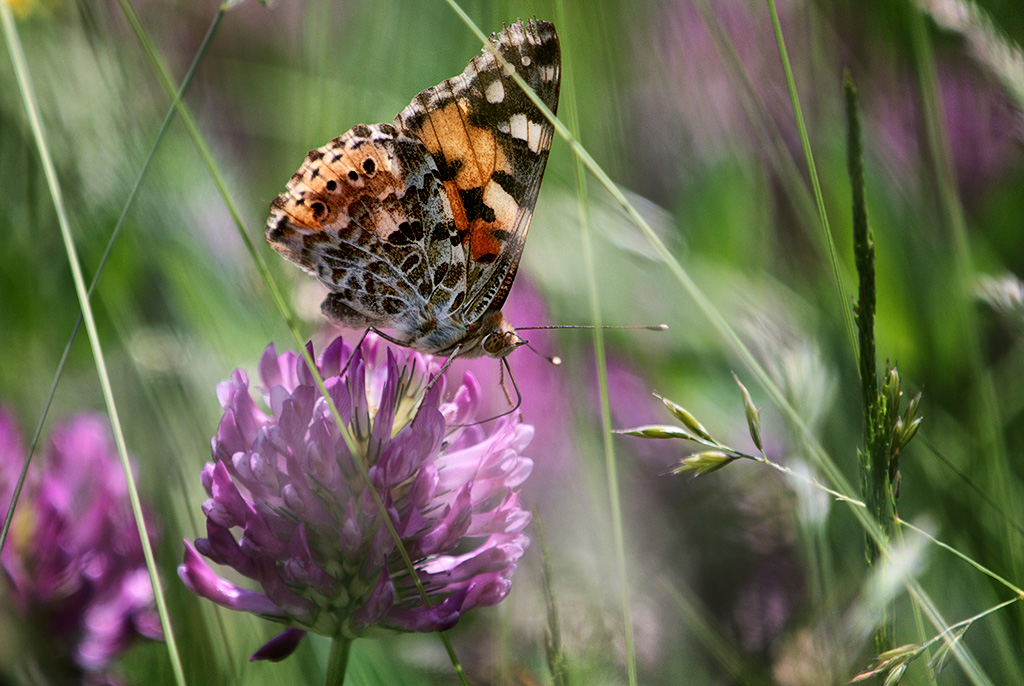 I think this is a beautiful image. I like the colors, the composition and the soft pastel lighting. I increased the contrast a bit and darkened the borders to bring more attention to the butterfly. |
