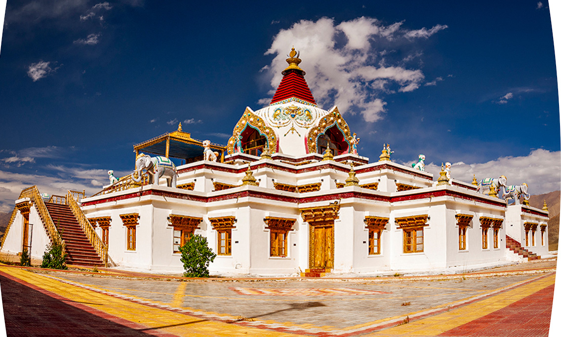 This is a most beautiful building. I'm not sure how well it would have worked if you had taken multiple images with your wide angle lens and stitched them in PS but it would give you more of the surrounding landscape to work with, so maybe something to consider for next time