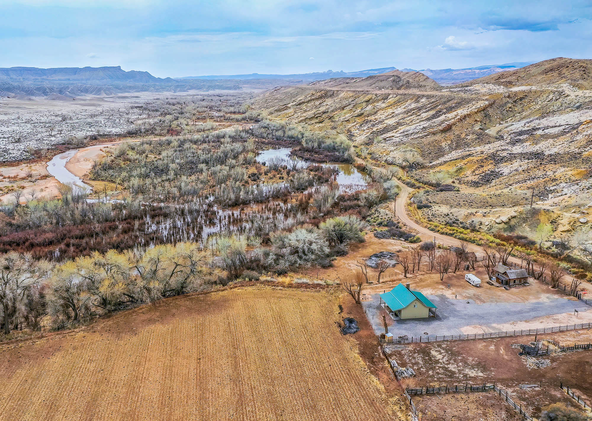 Hi Lou, a farm in the middle of badlands is an interesting subject, to be sure. However, the flooded river, the butte in the original, the farmhouse, and the bare field all compete for the viewer's attention. What is the main subject?