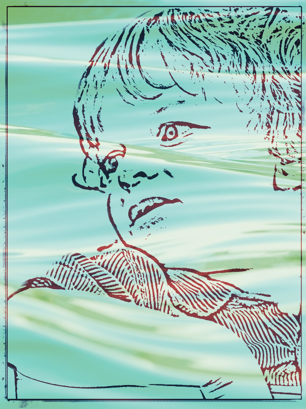 The original image was post processed in Photoshop, using the Sketch filter / Photocopy. I then added back colour to the eyes. The overlay was applied with PicMonkey / Smudge. I tried various overlays and treatments and the one I liked the best was in pastel colours but saved in some weird format that cannot be opened. I have been trying to duplicate it but so far no success. |