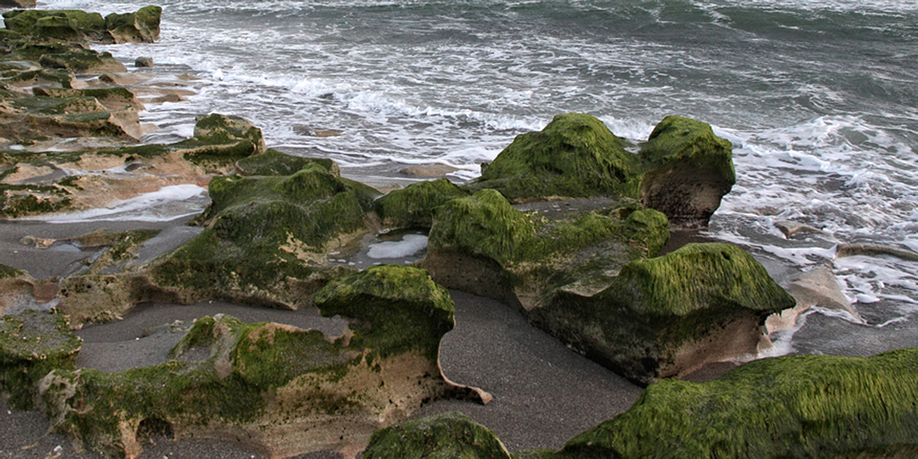 I am most attracted to the bottom third of this image, with the vivid greens and the detail of the fantastically eroded forms, so my thought was to crop it for just that. I also applied the OnOne Dynamic Contrast filter to emphasize detai; |