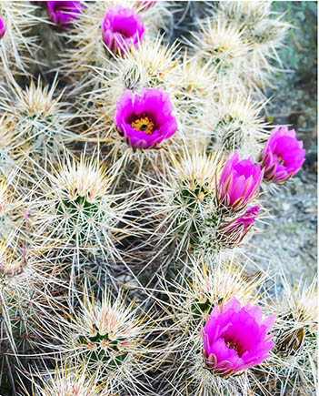 This is a great subject and a great image. I think that one of the attractions and challenges of nature photography is our human need to impose some sort of order on the natural world. This photo has a subject placed at each of the intersections postulated in the 'rule of thirds', but the result is that my eye wanders in a circle seeking somewhere to stop. This may mean that you don't have just one good picture here, but maybe 2 or 3.Here's one, cropped from the upper right corner. I think that the diagonal composition of the flowers may be stronger than the circular one of the originl. |