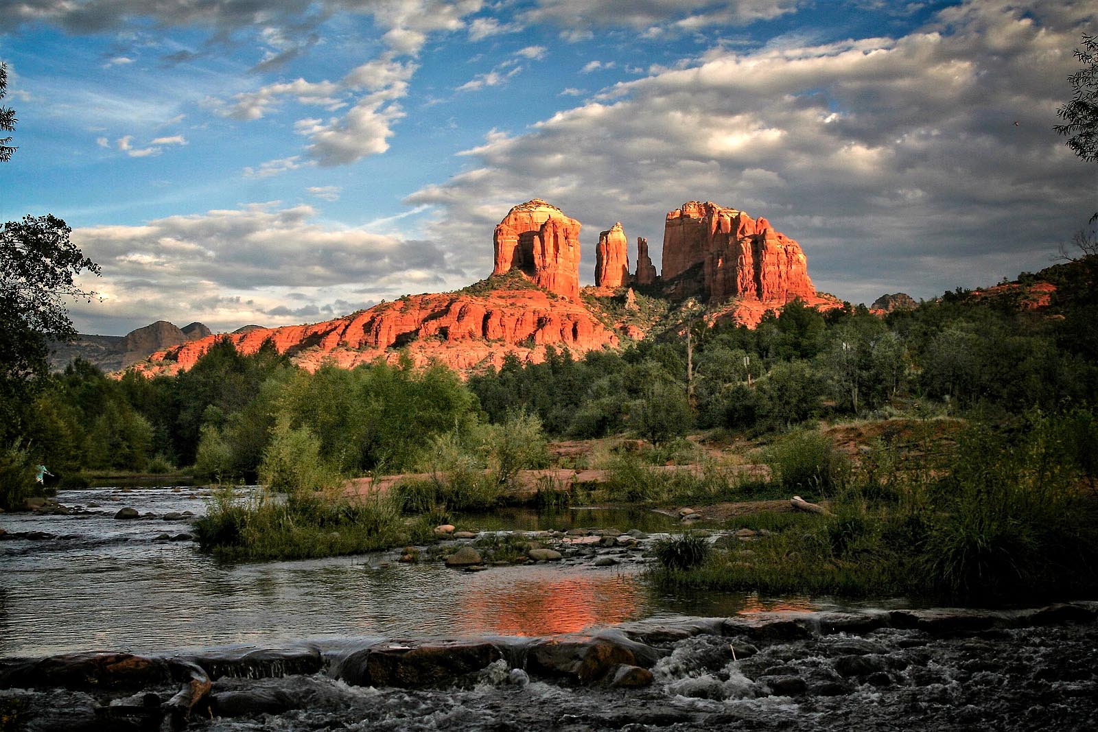 It;s a classic landscape, well executed. Using a gradated mask in PS, I lightened the foreground a bit, then inverted the mask and darkened the sky and rock very slightly, and added vibrance. I then used OnOne's Dynamic Contrast and Vignette Filters to add some 'pop'. |