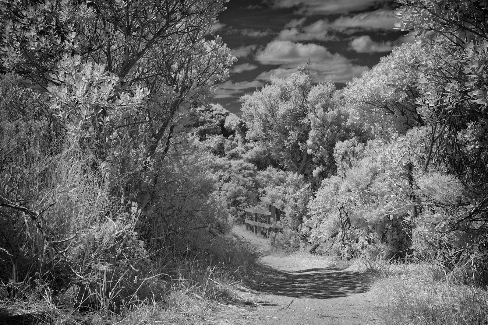 I get a very overprocessed feel from this image, perhaps "death by detail" where everything is maybe TOO sharp and TOO contrasty. If you look at the original image you can see a nice circular area of shadow that goes through the tree on the left and its shadow on the path, but is lost in the final image. I went back to the original and tried again. Let me know what you think. |