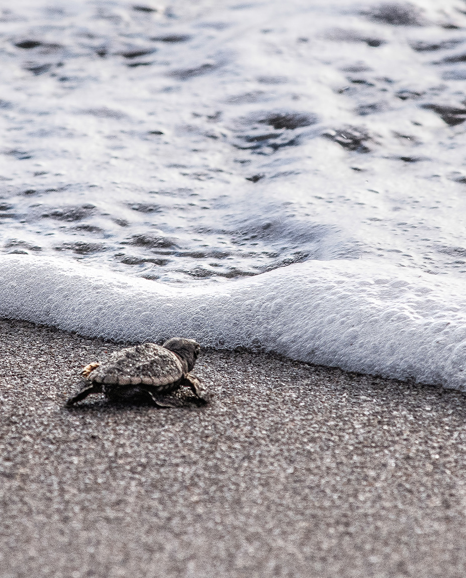 Larry, I have tried and tried to come upon a photographic opportunity with hatching sea turtles. (And, the lens issue is why we photographers are so tempted to buy bigger-and-bigger packs!) I think the "butt shot" was perfect here. There's one thing I wonder about: would a portrait orientation provide a greater sense of distance and the effort required? |