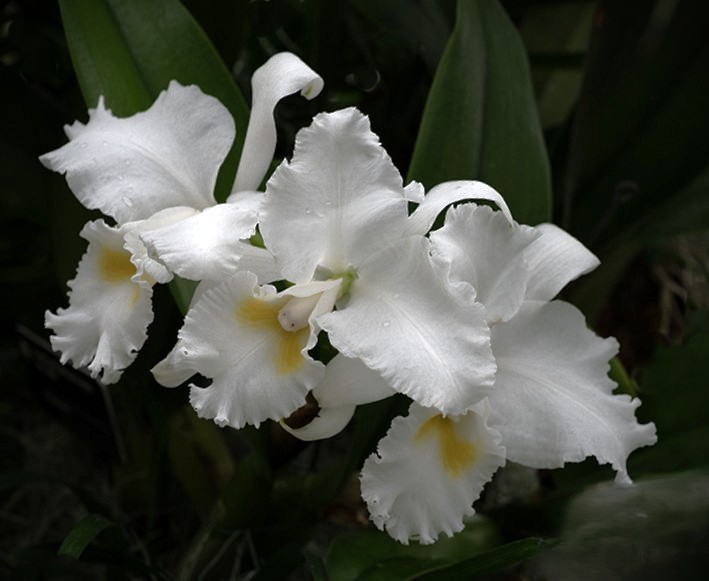 Orchid show? Were you able to pick a few and sneak out the back door? Around here, there is a big iris show. White ones are so hard to photograph, but you did a nice job here. I especially like how you removed the distractions (which are usually many at flower shows). On my monitor, I am losing some of the detail in the brighter sections of the white petals, but I know it is there. Three is always a charm, and you found the right plant to get that magic number.
