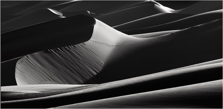Yes you have captured another moody dune shot with lots of light and shade, but I don't think this one works as well as the others you have shown. The main dune of interest with the footprints is lovely and flows across the left of the image well, but I find the right side a touch heavy and those highlights on the peaks of the dunes seem to be blown to me. I wonder if the saying less is more applies here as I find this very busy so a tighter crop maybe better. Here is an example. |