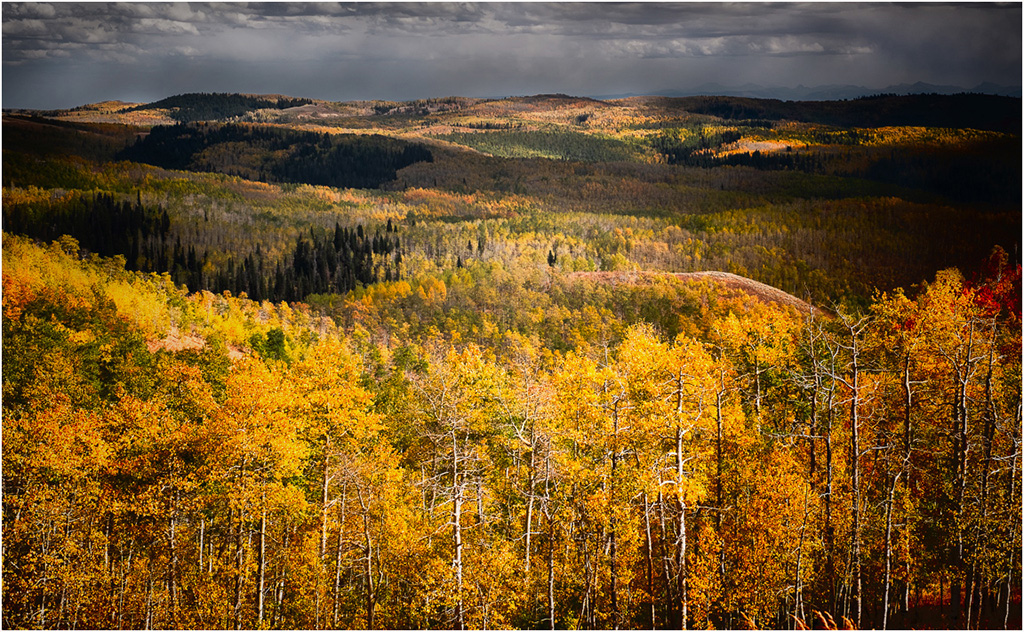 You have capture a lovely Autumn view of the vast woodland of Wolf Creek. Pin sharp to the front with all the layers showing off. The only thing visual that is wrong is the heads of the clouds are burnt out and chopped off, but the colours and trees are lovely.