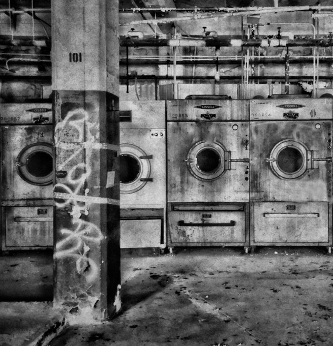Now I am a lover of monochrome, but on this occasion I think the colour is stronger as I think the colour holds the image together. When you remove the colour the image becomes very busy for my eyes and the base of the pillar in red is so strong. But in the monochrome the pillar and the machine far right fight for your attention. Then the motteled light just makes it very busy where the colour helped to hide this light.