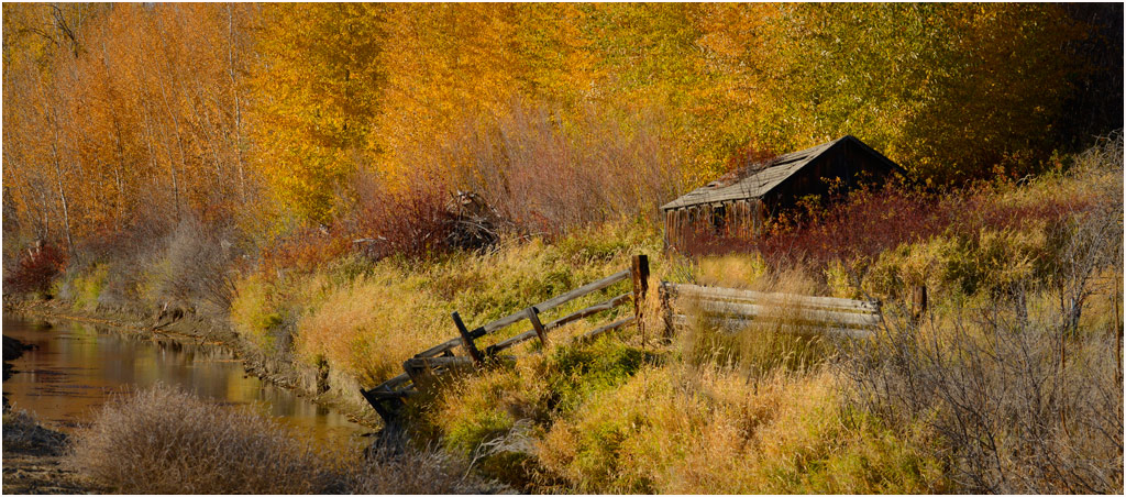 The Autumn colours in this image are beautifully captured and are very radiant. The Hut is in a nice position and the fence leads you to the hut, but partly that is where it is let down as the viewer is drawn away from the left side and all that colour. A real shame that the tree/bush sits in front of the fence as it breaks the line of the image in a bad way. I quickly played with PS2020 but with more care, you can do better. But it does improve the image removing it, better than an axe. |