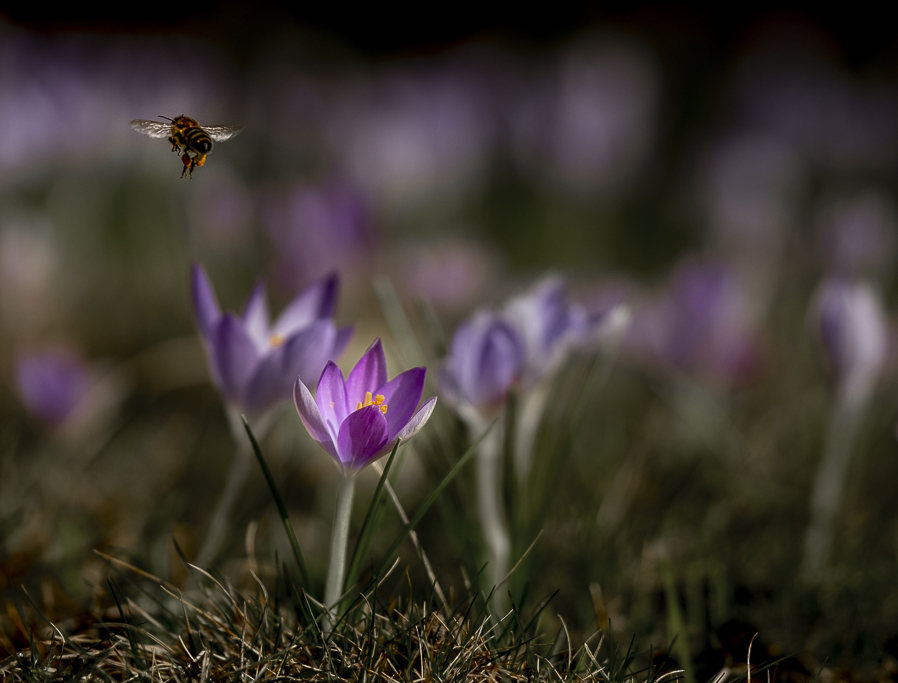 I think this is beautiful, your timing with the bee is spot on and the tone of the image is excellent. Just bring out that one flower and the Bee concentrate the eye and the rest just holds to image. With that said I do wonder if it sits better with the right hand side removed as that draws the eye. Wonderful image that the card people would love. |