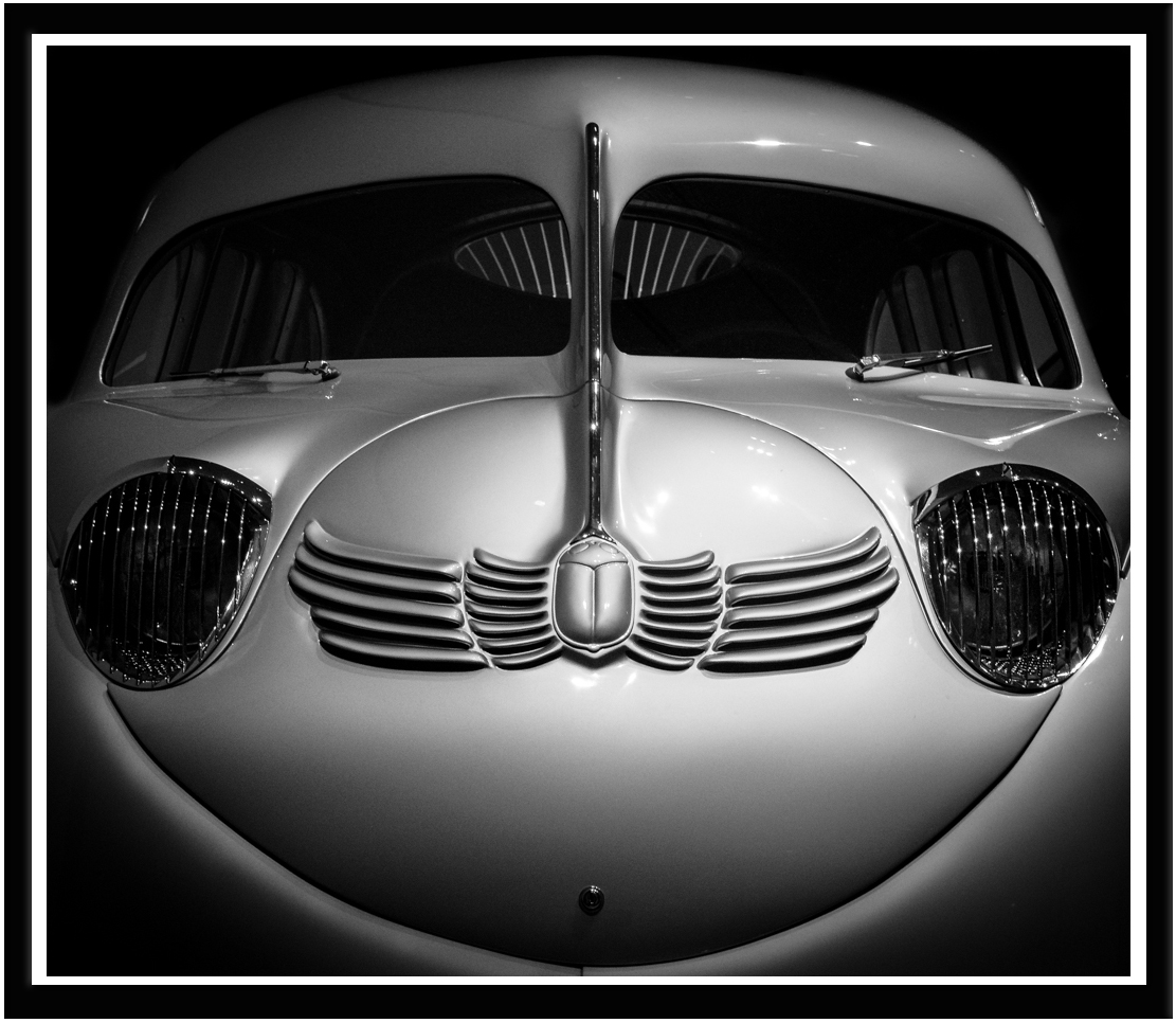 I love the angle you have chosen to shot this, it uses the lines of the car well. The relationship of the front architecture and the back windows works so well. With the tones and lighting this is one of those images that will look good in a black frame with and white border on the wall. So I had a go at representing that. |