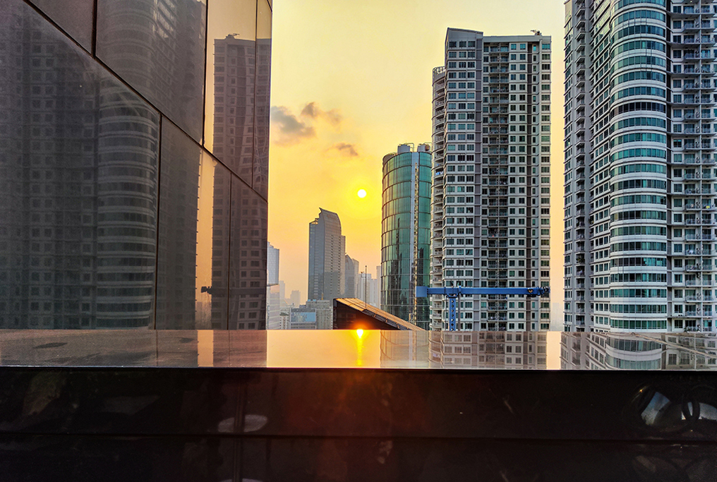 This is a nice shot, what a great position to get into. The colours are great and the reflection work very well, the building on the right is falling down so some gentle straitening needs doing. I would like to get a touch more tone into the buildings on the left as they would have been some shadow. Had a go. But fantastic image just needs some gentle help. |