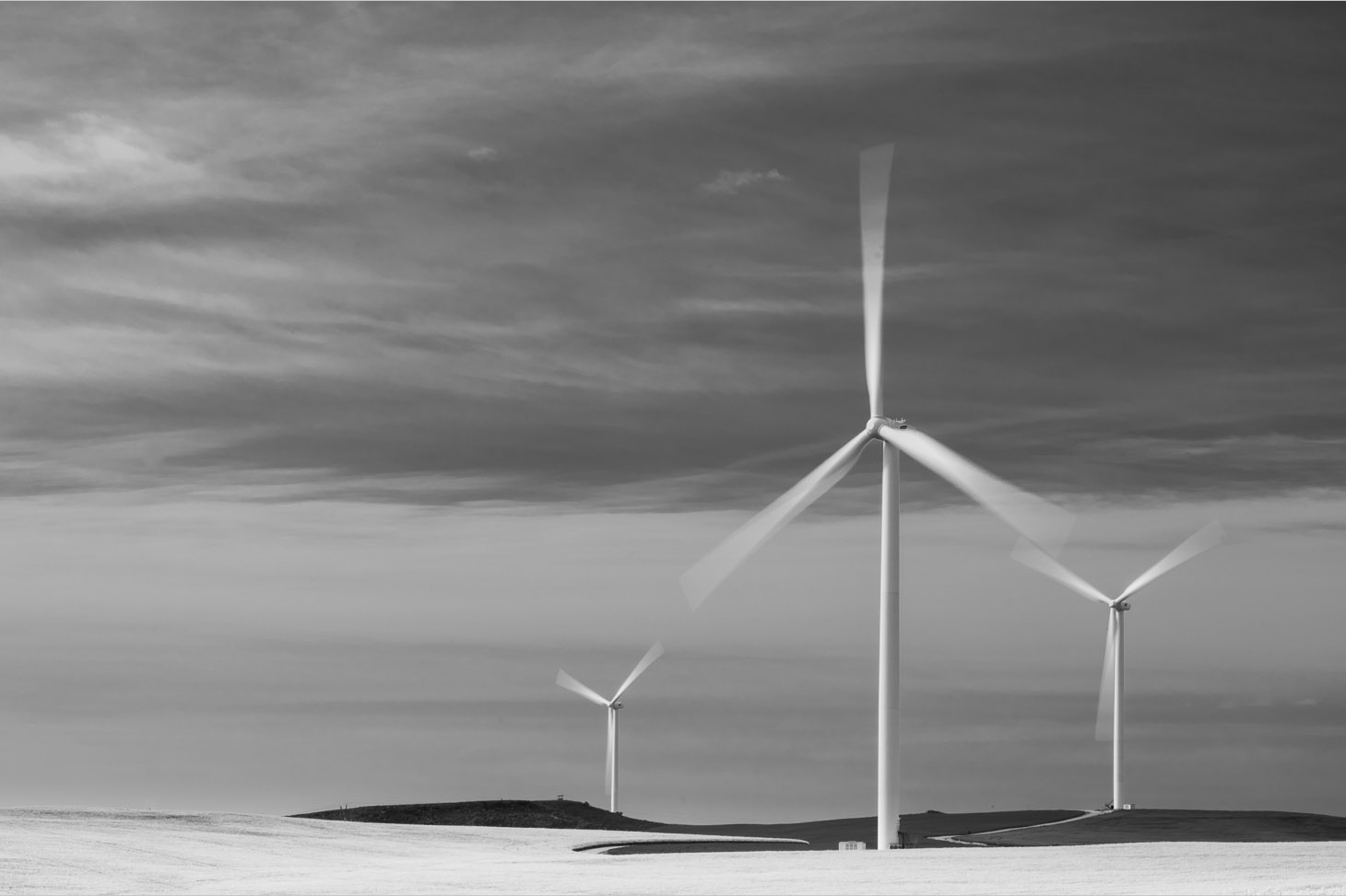 On a second note, the colour version does have impact and the way the strong yellow of the field sits with the blues of the sky is very nice then the three turbines are great. I do like that path coming in from the left. Idea for a crop. |