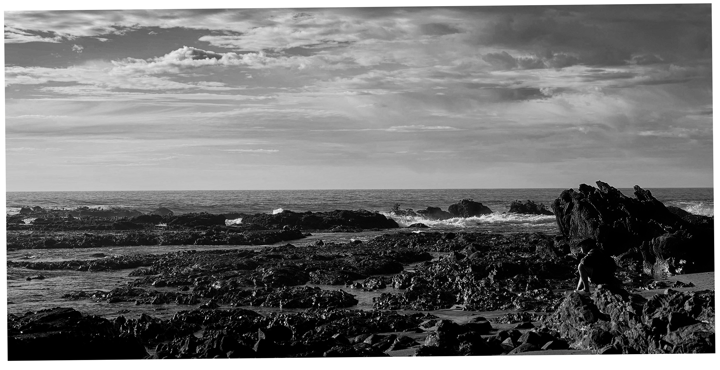 Put it through Topaz A1 to enhance focus, light and colour. Then in silver efex six turn monochrome with more silver and adjusted sliders to suit. Then in Photoshop camera raw I started to relit the image and bring the man out a bit more. I then cropped so the proportion allowed the viewer to see the image and the man played a part. Hope you like. |