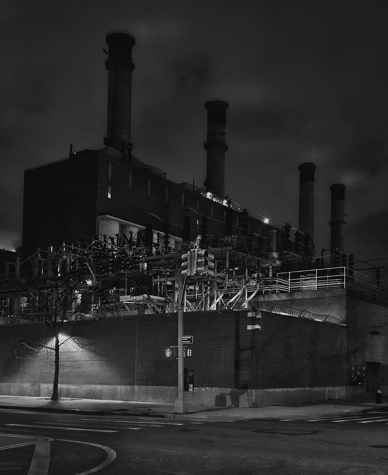 This is a great monochrome image and scene. The strength of those chimneys are so good that they hold there own and could have been taken anytime in the last 100 years. Then you have the rest of the furniture of the image, even the white lines are perfect in shape and form. But the man does not seem right, his dress style does not fit the image, his position and strength is perfect. Just needs to be darker or older if you get what I mean. But a great image that I wish I taken. |