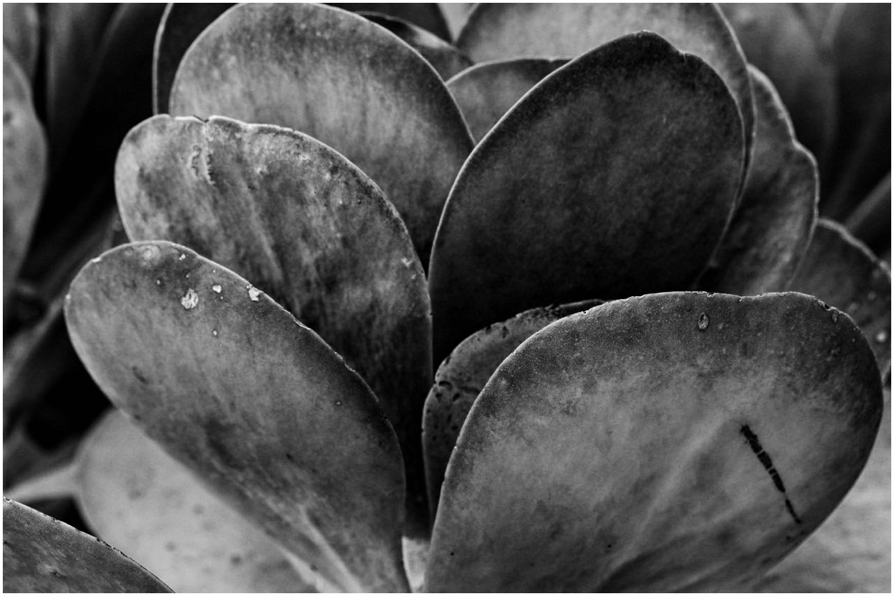 As said you have chosen a difficult subject to produce a good monochrome image. But there are tones in there. You say that you put it through Silver Efex. But you must have put it into Silver Efex and back out again without using any of the tolls to pull the tones out. You have this nice rim of red on the tops of the leaves and there lots of tones in those greens that the eye is not seeing.