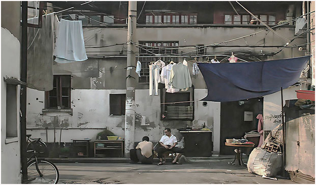 If you ever wanted to do a travel book or a book about life in Shanghai, this is the type of image that an editor would be looking for. Life as it really is, not pleasing to the eye but makes aa fantastic image. But if I was still having my editor head on, I would say they image comes over a touch to busy and for a book I would love to crop to emphasize the two men sitting in the street of washing and all the other stings around. The roofs are to much even though they were there. Great street scene. |