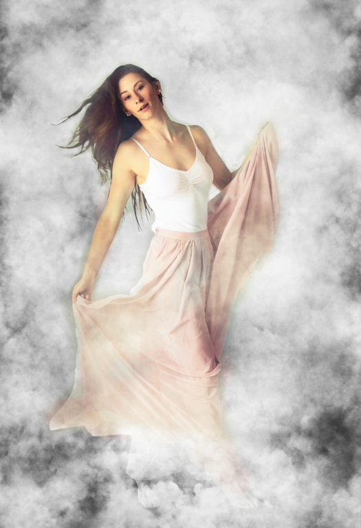 Jim, very nice image. I like the jumping pose and your I think the freeze of motion works. You did a great job background replacement is great and your choice of a cloud filled sky was a good choice. |