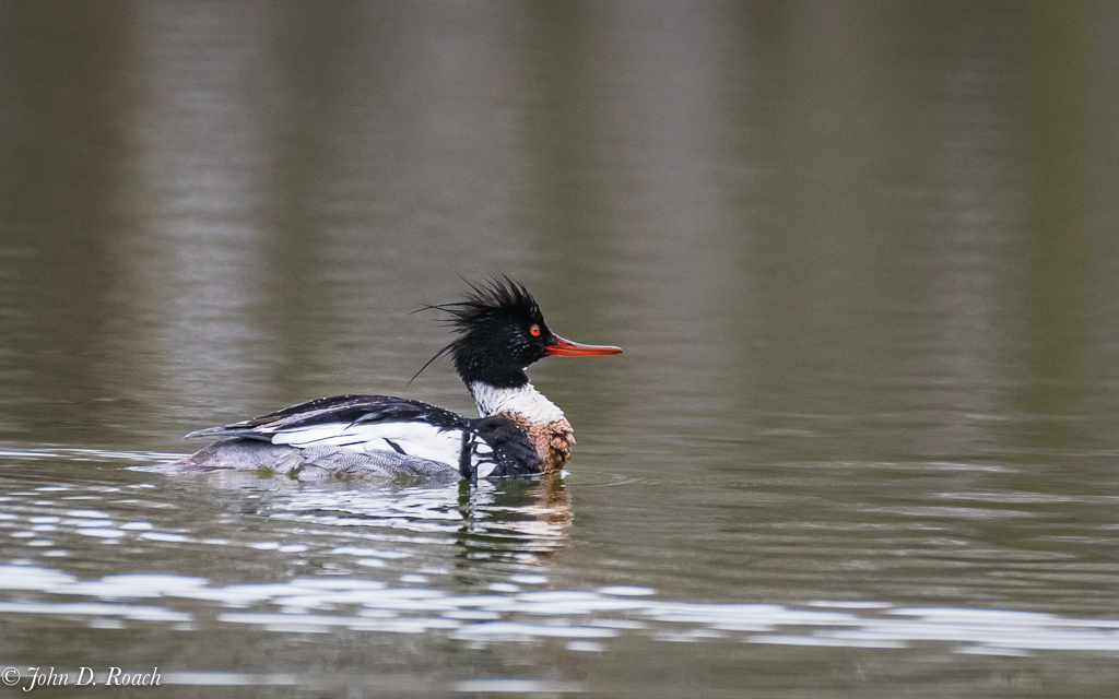 Mike, I went back and cropped the image some more in a manner that I thought I might find more pleasing. As I discovered the first time around, it made the grain from noise a little more pronounced, but I attempted to clean that up in Lightroom after some selective brush (shadow, exposure, clarity, saturation and dehazing) to keep some clarity in the duck. This makes the bird a little bigger by cropping and hopefully acceptable tonality and give the bird room to move and a sense of movement overall. |