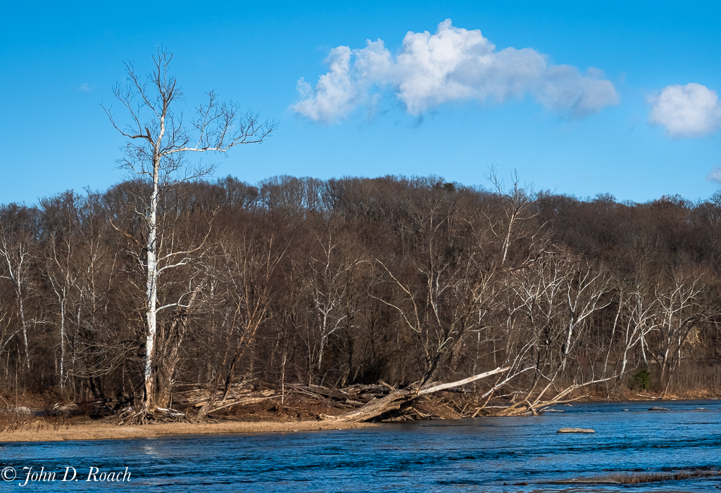 Thanks for your thoughts, Mike. My vision was less about the water, but here is one with all the water I caught in the original frame. It works, but, in my opinion, I am not sure the added water makes much difference, if the focus on the trees along the river bank. I did several images which were more about the river and the rocks that are plentiful on the James River. That is for another series. |