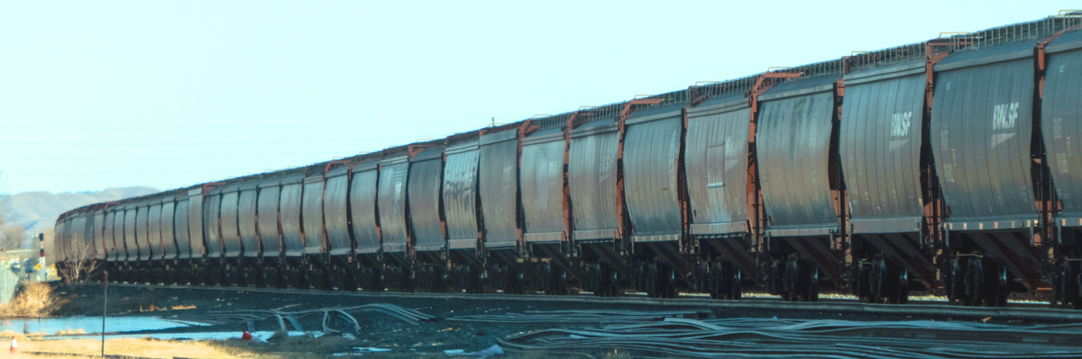 This was in a rail yard and was hooked to a unit train. I think it was empty grain cars. It seems like I have heard that there are 110 cars in the grain trains. There are also coal trains going through the yard but I don't think they use cars like what was hooked behind these engines.
