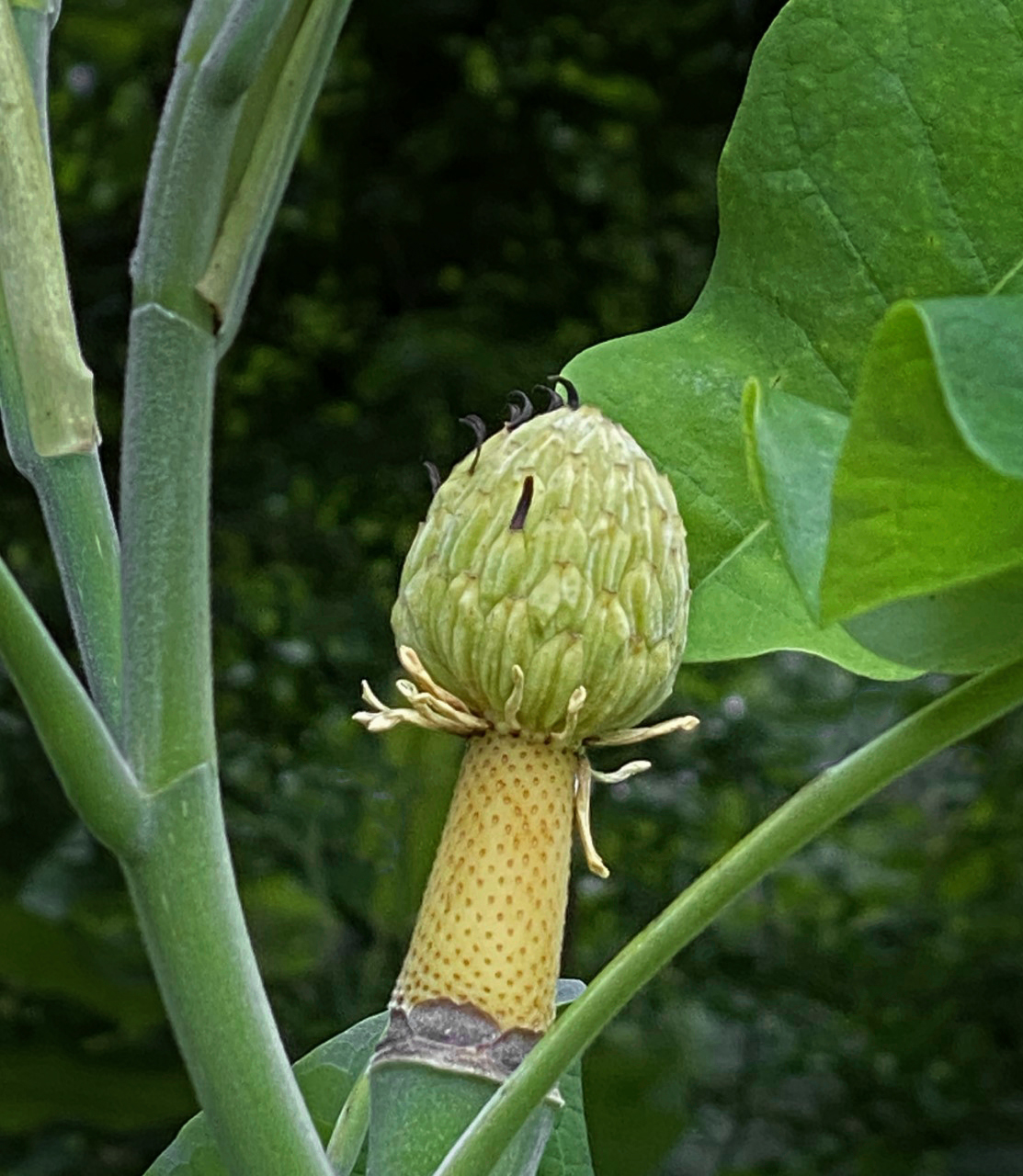 I like your subject. They eye of the viewer tends to go to the brightest part of an image. In this case, that is probably the upper left corner which would take the eye out of the image. Dave's crop does seem to handle that. You might also work with adding a well feathered vignette or play with the contrast to darken the greens and bright the pod. You might also clone out the bright sky poking through the background. |