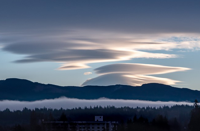 Great image of the clouds and the fog layer. I have been called a cropaholic before so I might try cropping in closer to just the clouds on the right side and also cropping off the white roofs at the bottom. |